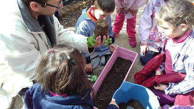 Sembrando plantas para nuestro "mini huerto" escolar (plantas aromáticas, lechugas, cebollinos... Y todo lo que vayamos adquiriendo). Y que luego habrá que cuidar entre tod@s, es nuestra rEsPoNsAbiLidAd. Nos iremos organizando para ello.