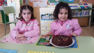 Su mamá hizo una tarta riquísima para compartir con l@s compañer@s, y además trajo unas galletas para una personita especial y maravillosa que tenemos en el cole y que no puede comer huevo.